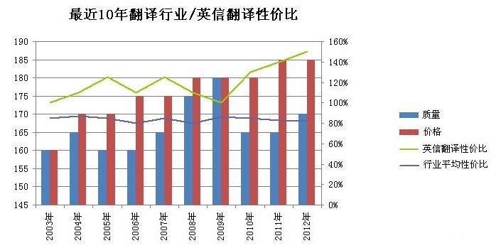 (3) 性价比趋势;最近10年来英信翻译在翻译行业性价比情况如下: